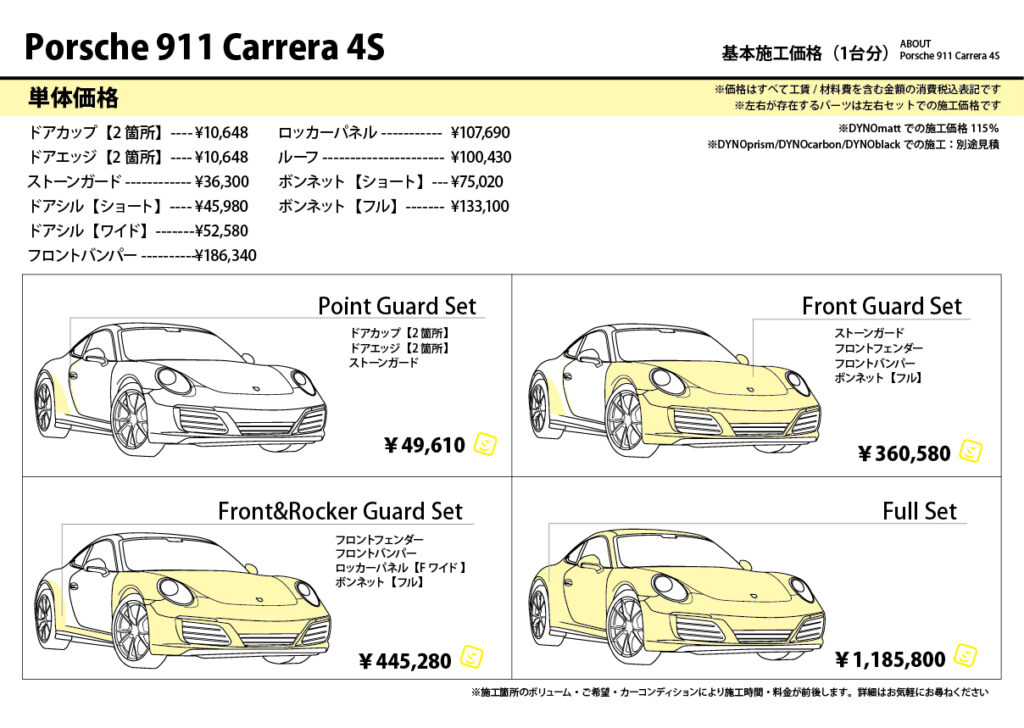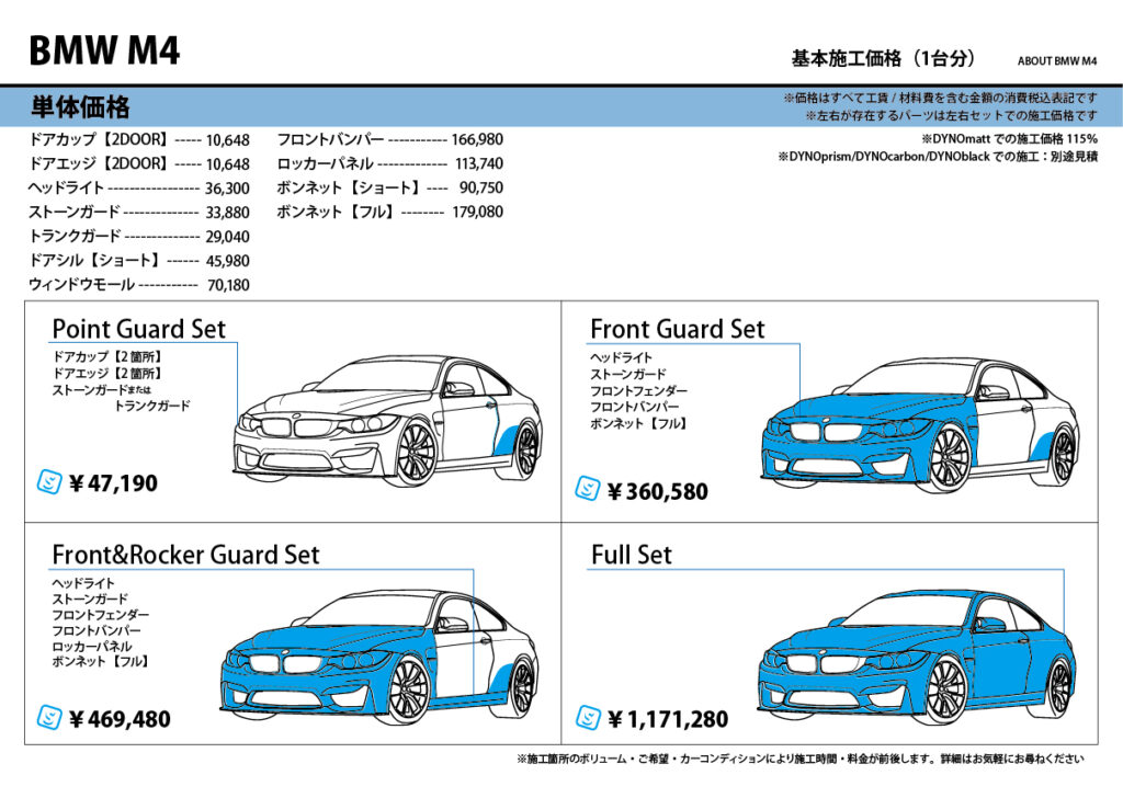 ※施工にあたっては、事前に車両を拝見させていただき、車両の確認・施工の可否~お見積、作業内容を説明・確認の上、ご予約にて承ります。